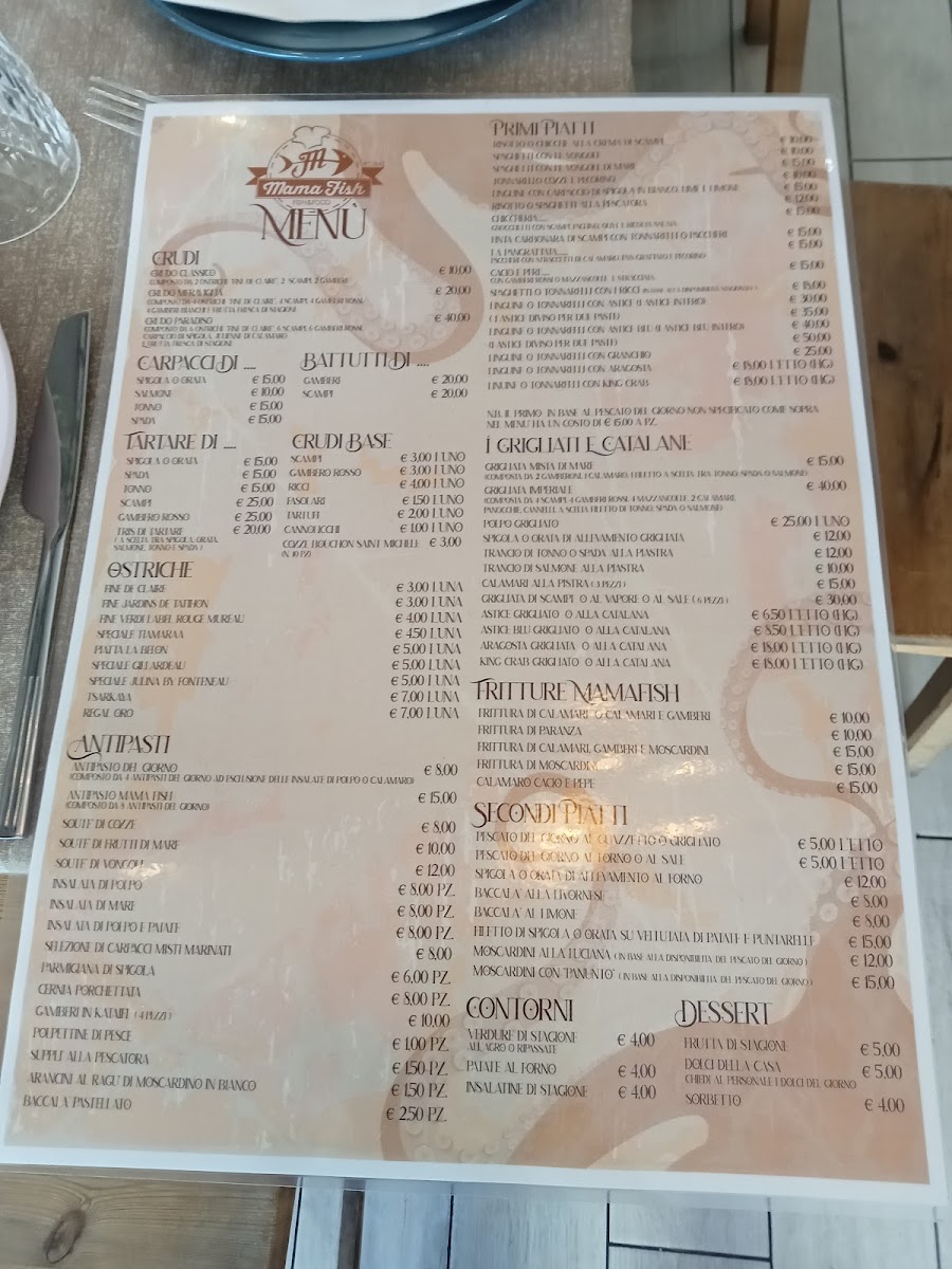 Welcome to Mama Fish, a hidden gem nestled in the heart of Roma at Via dei Castani. This charming seafood restaurant offers a delightful menu focused on fresh ingredients and authentic flavors. Antipasti such as Alici Marinate (€10) set the tone for an unforgettable dining experience.